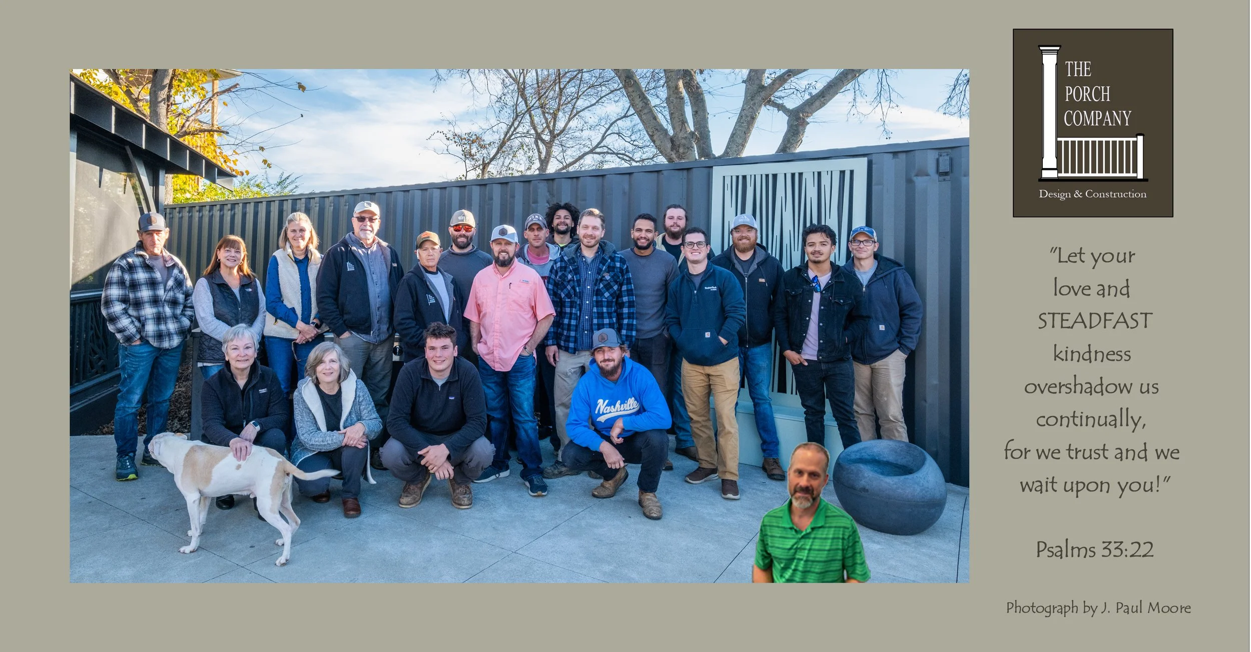 The Porch Company is a Nashville and Franklin-based porch construction company specializing in screened-in porches, open-air porches, front porches, and outdoor construction. From concept to execution, we're here to help bring your porch ideas to life and build a simpler way of living to you and your family.
